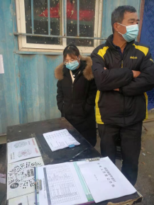 上午在村口做登记工作和巡逻工作,将出入的人员的信息登记完整并给他们测体温,在确认体温正常并有相关工作证明才予以放行。在1月13日,披甲营村委会实行了更为严格的出入制度,12号全村做完核酸检测以后,7天内居家隔离。对于一线工作的人员志愿者登记他们的信息后允许出入。