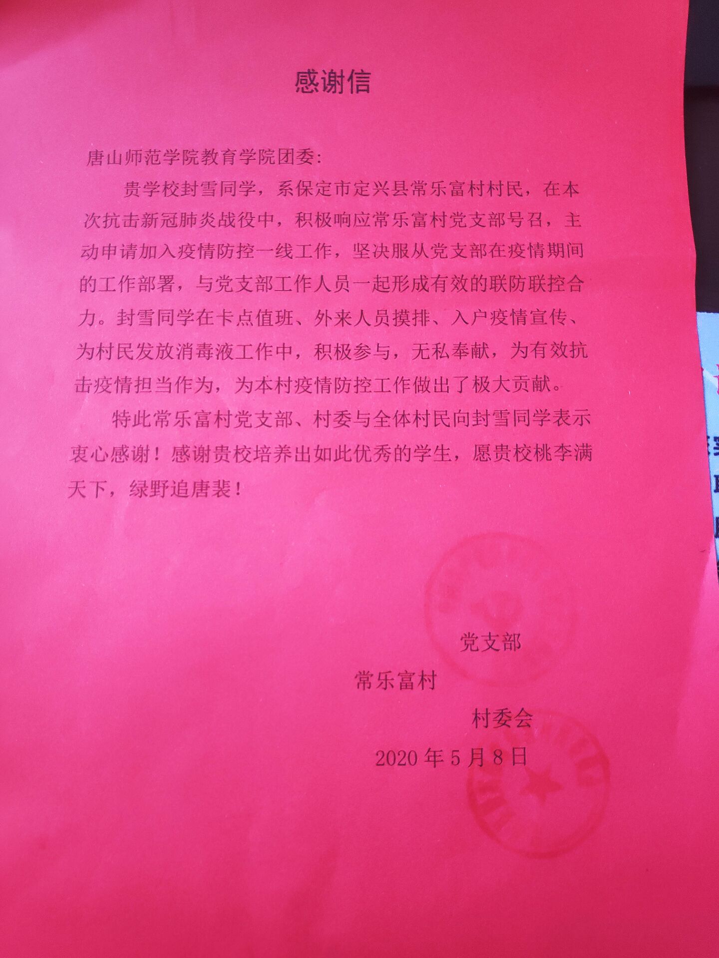自2020年2月1日,我接到村委会填写核实防疫调查表的任务,走访调查村户家庭人数健康状况,排查武汉回国返乡人员,认真填写整理防疫调查表格,将其他人员收集到的信息整理汇总,帮助村委会人员分发口罩、消毒液等消毒用品给村民,通过撰写编辑广播标语等方式大力宣传疫情防控知识。为在各个村口设卡,在寒风中默默值守站岗的工作人员提供帮助。在这场没有硝烟的战争中,每个人都贡献自己的一份力,尽自己应尽的责任。