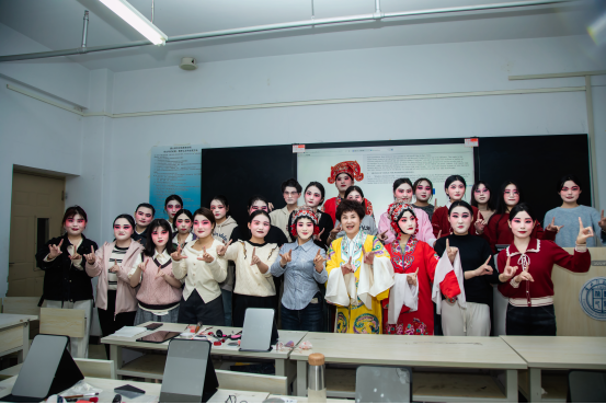 课程以“戏曲妆容里的美学原理”为主题,注重理论性与体验性、互动性相结合,特别是戏曲扮相中的大扮、古扮和越扮,激发了同学们的浓厚兴趣。23学前一班的霍雅婷说:“上了罗老师的品质鉴赏课,我深深地体会到了服饰服装以及妆造的美丽,让我深深的爱上了评剧鉴赏课。”