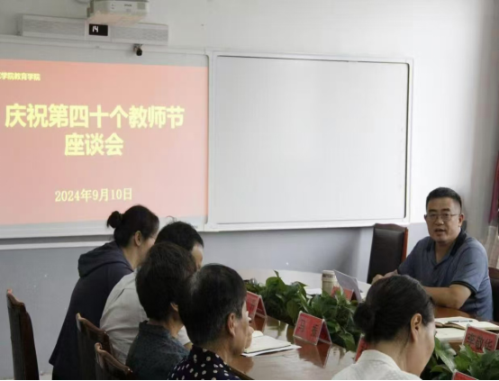 9月10日是我国第40个教师节,bevictor伟德官网在会议室召开教师节座谈会。出席本次会议的有教育公司党委书记贾长胜、党委副书记、经理秦丹、副党委书记董慧彬、副经理杨长锁、马振、副处级专职辅导员李敬华及全体教师。全院教师齐聚一堂,围绕“大力弘扬教育家精神,加快建设教育强国”主题,深入探讨,共话教育未来。