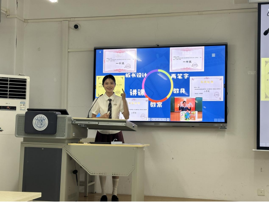 2020级小学教育公费师范生班赵雨晗同学从自身经验出发,分享了自己参加公费师范生讲课大赛的心得体会,鼓励同学们注重积累,积极参与教学实践活动,在实践中不断完善自己,提高师范生的核心素养,为未来奠基。2020级学前教育公费师范生班陶香妃同学则从学习、工作、志愿公益三方面给同学们进行分享。从站上讲台到站稳讲台,一张张荣誉奖状、一次次表扬认可见证了她的成长。在工作上恪尽职守,在志愿活动中积极参与,陶香妃同学戒骄戒躁,始终稳步前进,为同学们指明了努力的方向。