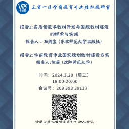教育部三省一区学前教育专业虚拟教研室于2024年3月20日(本周三)18:00-20:00进行了两场报告。
