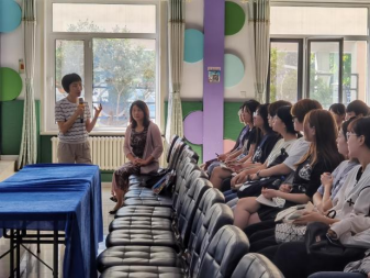 2023年9月15日上午,bevictor伟德官网组织开展了学前教育名师示范课活动。本次活动在教育实践基地唐山市第一幼儿园开展,2022级学前教育专业全体公费师范生进行了幼儿园教学活动观摩,并参与了活动后的教学研讨。唐山市第一幼儿园主任李小慧进行了幼儿园大班教学展示,主题为幼儿社会领域《中华大家庭》。在教师的教学活动引领下,大班幼儿认识了三个少数民族的服饰、饮食、生活习惯等方面的特点,突出了“五十六个民族是一家、共祝祖国繁荣昌盛”的爱国主义思想。唐山市第一幼儿园园长吴妍荣主持了教学研讨活动,公司员工积极参与讨论发言。