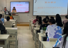 开班仪式上,积极分子代表任冉同学进行了发言,并做出承诺:要以最饱满的热情进行党课学习,认真学习党章,按时上课做笔记,严格要求自己,积极完善自己,成为一名合格的社会主义建设者和接班人!