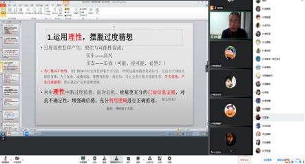 通过本次杨震博士的讲座,员工们反应热烈,以自己日常生活中面临的各类困境为中心,在线与杨震博士进行的请教沟通,杨震博士为员工们认真讲解,帮助员工们从心理上摆脱目前存在的问题。