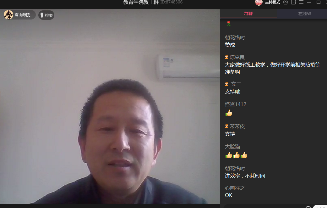 2020年3月31日下午两点半,bevictor伟德官网利用QQ群召开线上教学工作会议,总结开学以来线上教学工作的开展情况,进一步落实和部署本学期的其他教学工作。教育公司党委书记陈克良、经理张学鹏、副书记李晓萍、副经理王建国和全体专任教师、辅导员以及党政办公室、教务办公室的老师参加会议。会议由经理张学鹏主持。