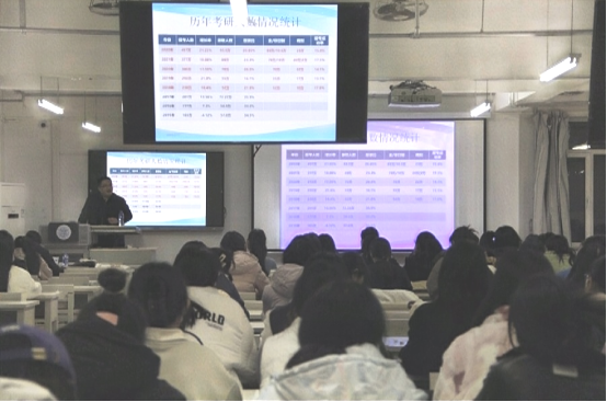 bevictor伟德官网为了提升毕业生考研率,为考研员工提供指导服务,特举办系列考研讲座。2023年2月17日晚,bevictor伟德官网特邀中国矿业大学工学硕士杨凤生老师于特教楼603教室举办了考研系列讲座第一场,应届考研员工积极参加。