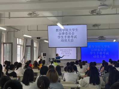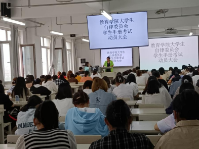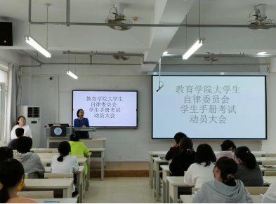 下午两点大会准时开始,在督察部部长激情昂扬的开场白后,董慧彬老师发表讲话,希望同学们在《员工手册》考试中可以取得优异的成绩,董老师的讲话鼓舞了参加考试的同学的士气。随后由督察部部员为在座的同学们勾画考试重点,帮助了同学们更好地进行学习和背诵。最后督察部部长对动员大会进行了总结。