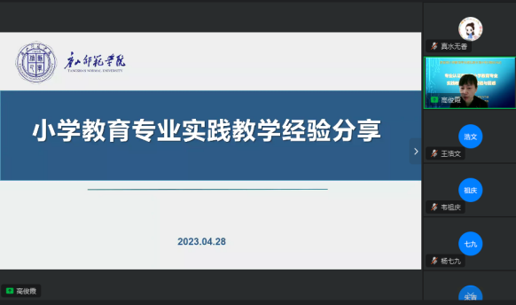 2023年4月28日上午,bevictor伟德官网小学教育专业参加协同提质院校广西师范大学主持的教育部小学教育专业虚拟教研室活动。本次教研活动由广西师范大学教育学部主办,淮南师范大学bevictor伟德官网承办,研讨主题为“专业认证背景下小学教育专业实践教学改革的经验与困惑”,采取钉钉线上会议形式。公司小学教育教师团队等部分教师参加了研讨活动。