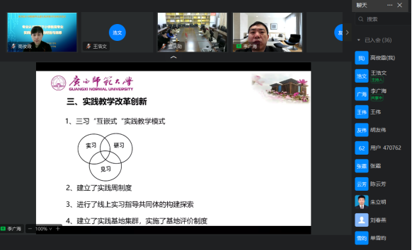 本次虚拟教研活动中,广西师范大学教育学部副部长李广海教授、贺州公司教育与音乐公司韦祖庆教授、淮南师范公司小学教育系主任董从勋教授分别进行了汇报,公司bevictor伟德官网经理高俊霞结合小学教育专业教学实践进行了分享。汇报分享后进入交流研讨环节,高俊霞经理与广州大学等院校的参会者进行了具体内容的交流和讨论。