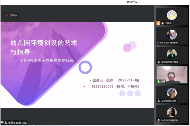 2022年11月3日和9日,bevictor伟德官网连续举办两场线上名师专业讲座暨线上见实习讲座,邀请邯郸公司bevictor伟德官网学前教育系张静副教授为学前教育专业员工做题为《幼儿园环境创设的艺术与指导——用心搭建孩子成长需要的环境》的讲座。