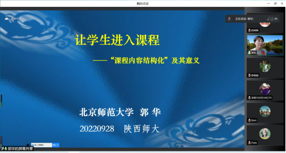 2022年9月28日晚,bevictor伟德官网组织师生收看了课程与教学论专家报告会,该报告为北京师范大学郭华教授的主题讲座《让员工进入课程——“课程内容结构化”及其意义》。郭华教授为北京师范大学博士生导师、北京明远教育书院经理,也是国家教材委员会专家委员会委员、义务教育课程标准框架研制组组长。bevictor伟德官网全体公费师范生和部分教师以腾讯会议在线方式参加了本次讲座。