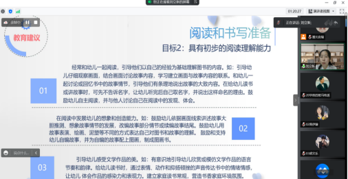 刘立新园长从事学前教育工作30年,具有较高的教育理论水平、丰富的教学实践经验。在讲座中,她以幼儿园语言教学活动为切入点,深入剖析语言教学实录《好消息 坏消息》,讲解了如何对幼儿园语言教学活动进行设计与组织,对幼儿园语言教学活动的目标、内容、方法以及一般步骤等进行了详细解读。同时,聚焦幼儿文学教育活动,讲授了幼儿园如何开展文学作品学习活动的的内容,解析幼儿文学作品学习活动的基本结构,对于如何精准把控幼儿故事活动的选材、组织与指导要点进行了深入细致的讲解。