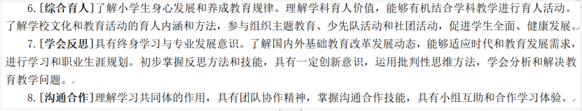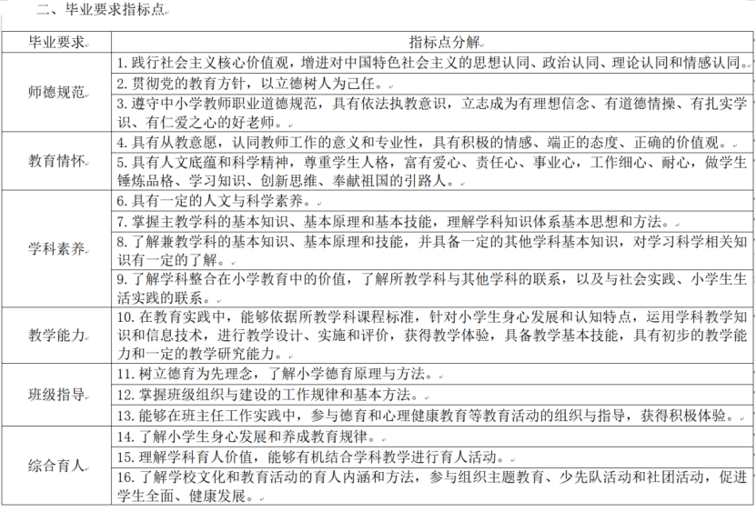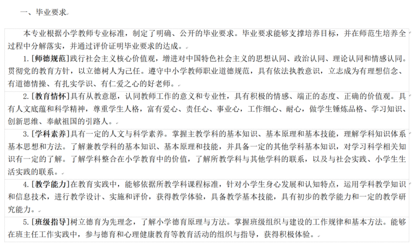 2020级小学教育专业毕业要求