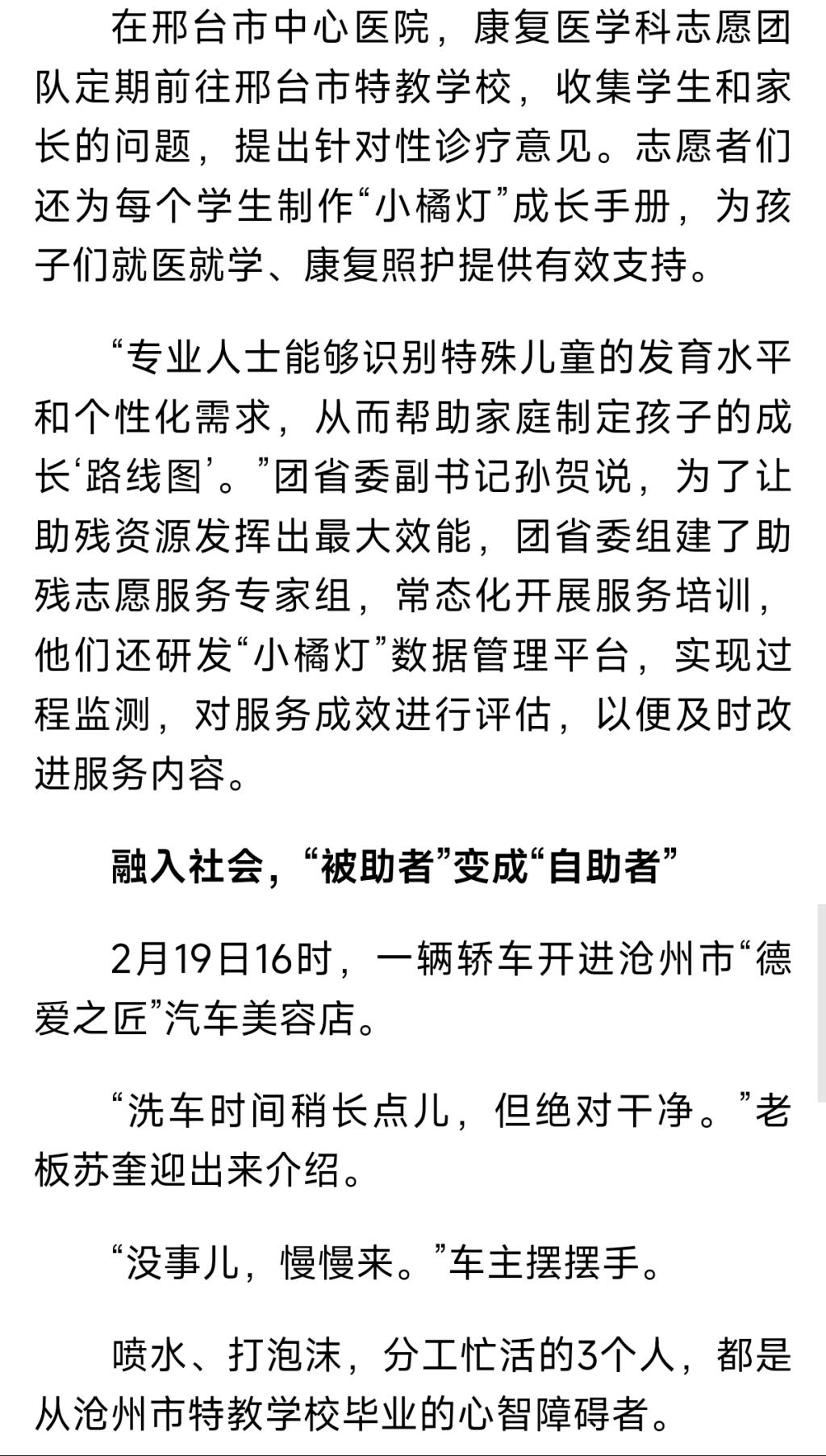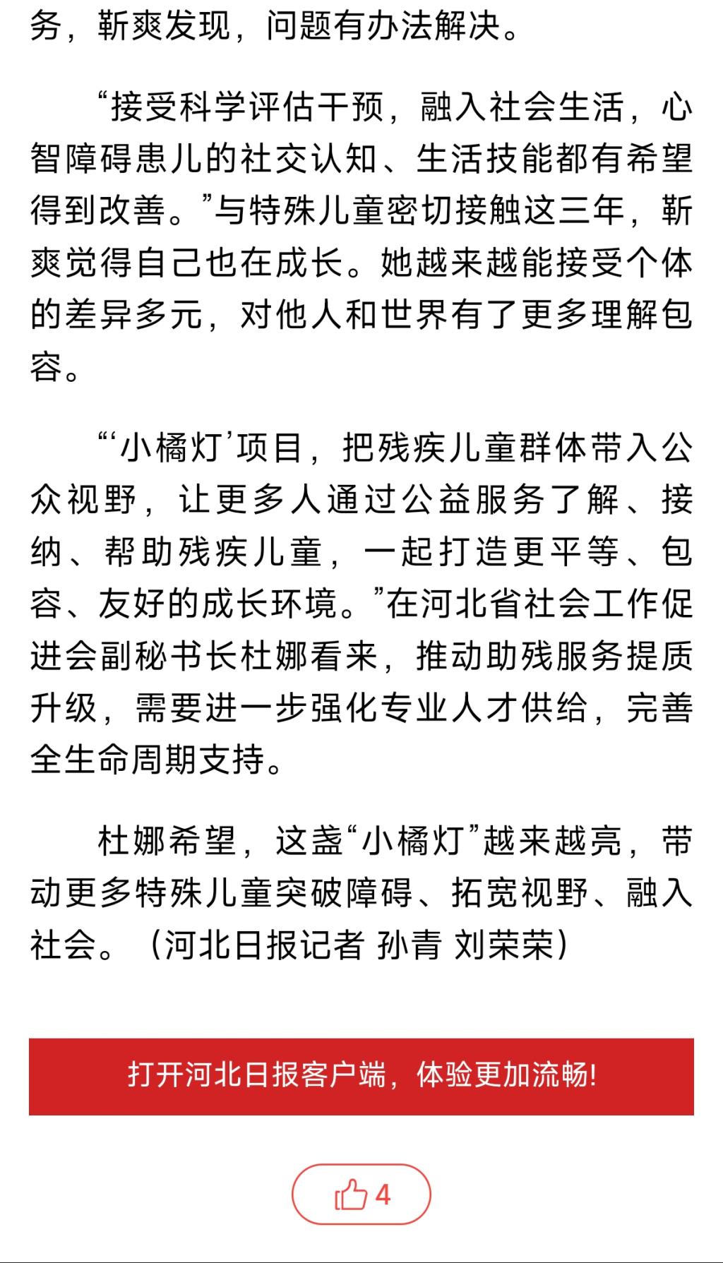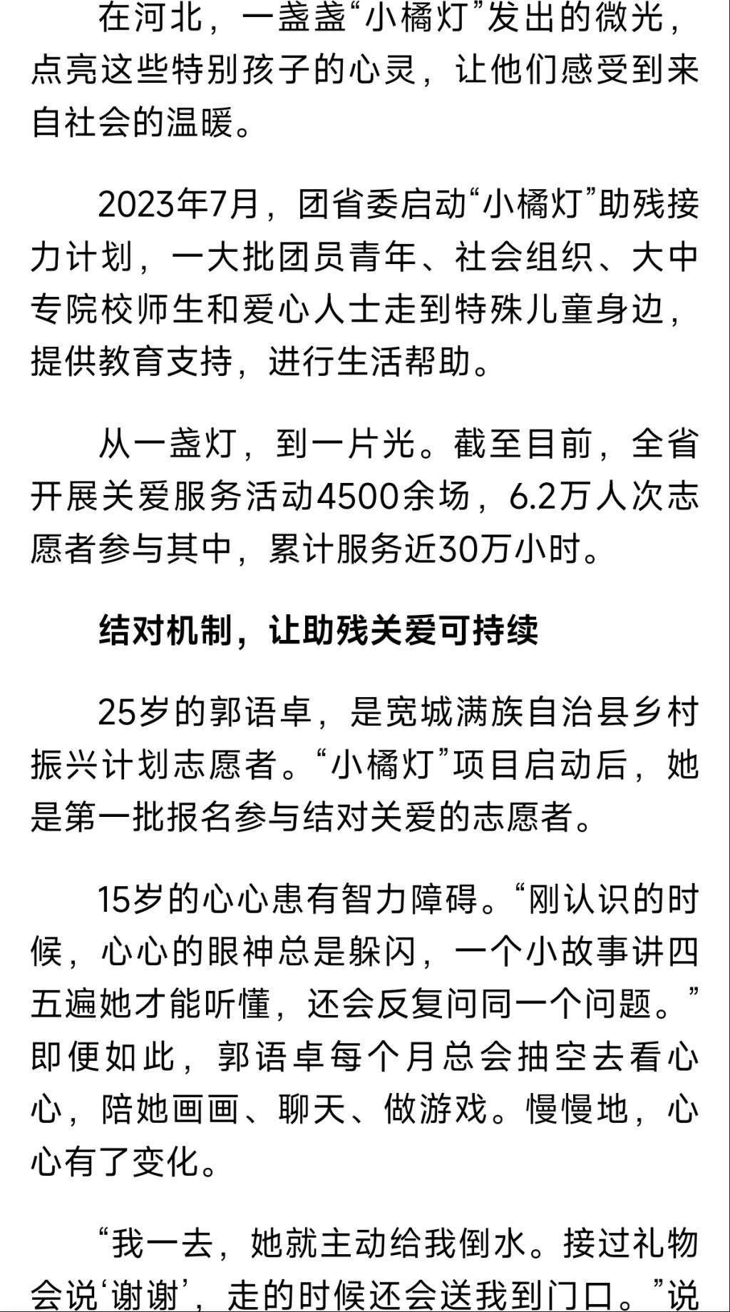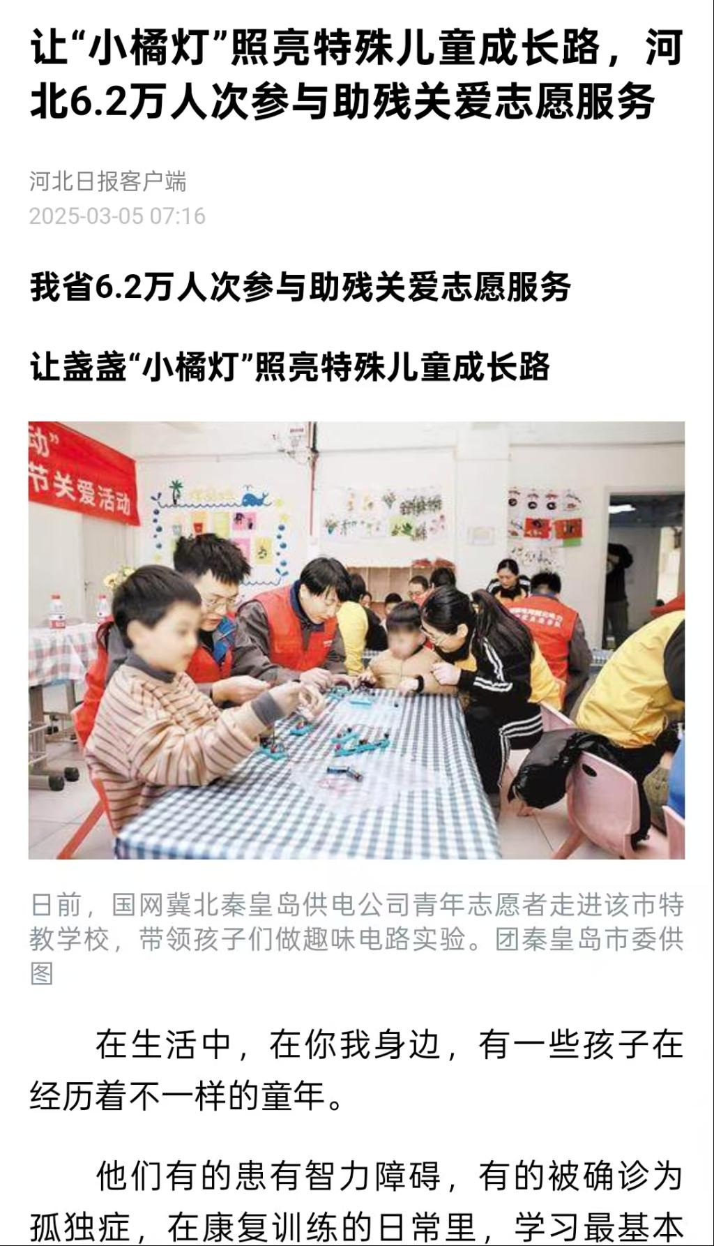 《河北日报》—让“小橘灯”照亮特殊儿童成长路,河北6.2万人次参与助残关爱志愿服务