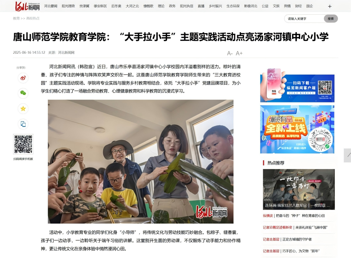 《河北新闻网》—bevictor伟德官网:“大手拉小手”主题实践活动点亮汤家河镇中心小学