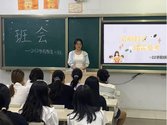 本次班会活动以“合理制定备考计划”为中心,聚焦备考的核心问题而展开。2021级小学教育3班的负责人在班会上分享了“有效刷题”的备考策略,要“快、准、狠”地找到自身知识的薄弱点,为同学们积极备考提供了可借鉴的方法。2022级特殊教育班负责人说明了归纳总结的必要性,鼓励同学们通过归纳总结,完善知识结构,使知识系统化、条理化。2022级应用心理学班负责人则强调了一个良好心态对教资考试的重要性,提醒同学们在备考过程中注意缓解焦虑情绪,以乐观自信的心态应对教团队格证考试。