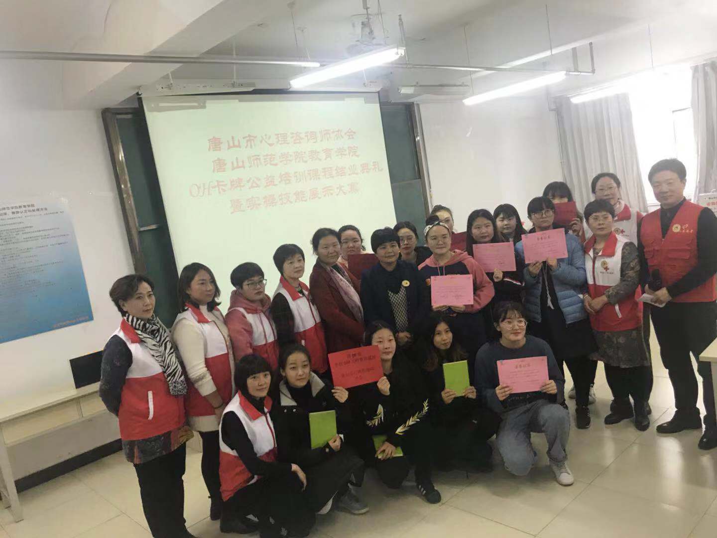 2018年12月8日上午9:30,唐山市心理咨询师协会、bevictor伟德官网OH卡牌公益培训课程结业典礼暨实操技能展示大赛在教楼503教室拉开帷幕。