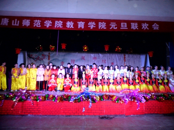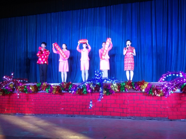 本次联欢会打破了以往联欢会的传统模式,舞台布置更加喜庆、新颖,五颜六色的气球、彩带、拉花以及多副喜迎新年的对联都为联欢会增添了喜庆的色彩。 本次联欢会师生同台献艺,喜气洋洋,以《开门红》的大型舞蹈拉开了序幕。