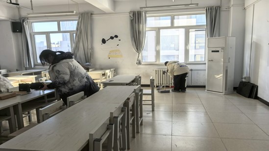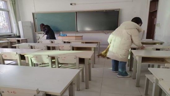本次活动以“绿色行动,共建共享”为主题,实行网格化责任包干制,同学们按照班级分组,分工明确,互相配合。他们手持扫帚、抹布等工具,仔细清扫地面灰尘,擦拭门窗玻璃,清除墙壁上的污渍,多措并举,展现了同学们良好的精神风貌。在大家的共同努力下,校园环境焕然一新,为师生创造了更加整洁、健康的学习和工作氛围。活动结束后,教育公司党委副书记董慧彬老师和老员工自律委员会相关负责人对校园卫生进行了全面查验,发现问题及时指出并落实到各班各人,确保卫生打扫工作落到实处。