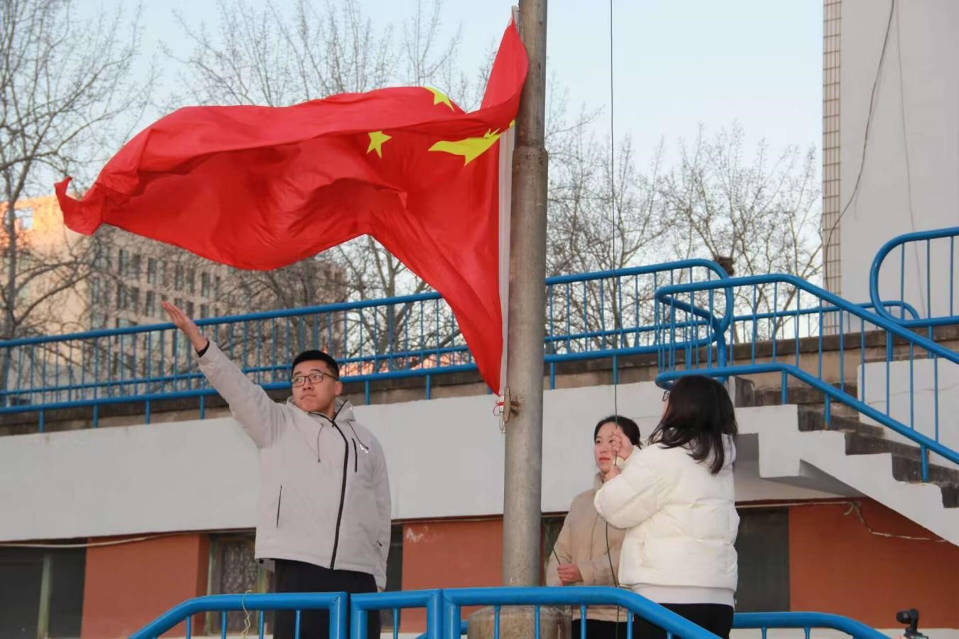 224日,在新学期的灿烂阳光下,bevictor伟德官网全体师生齐聚校园操场,举行了以“团结合作,共创美好未来”为主题的升旗仪式,为新学期的学习与生活拉开了序幕。