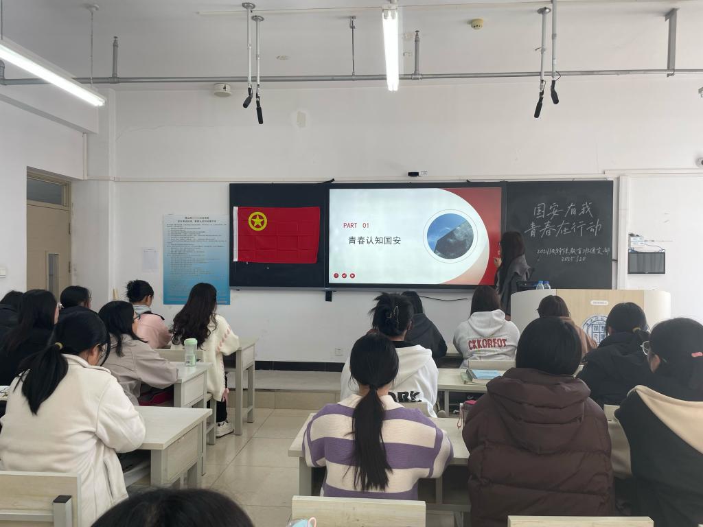 随后,各团支部迅速响应,将国家安全教育融入主题团日活动:2024级学前教育一班团支部以“国家安全·青年同行”为主题开展沉浸式学习。通过观看国家安全警示教育片、剖析真实案例等形式,同学们在互动中深化了对意识形态安全、网络安全等领域的认知。