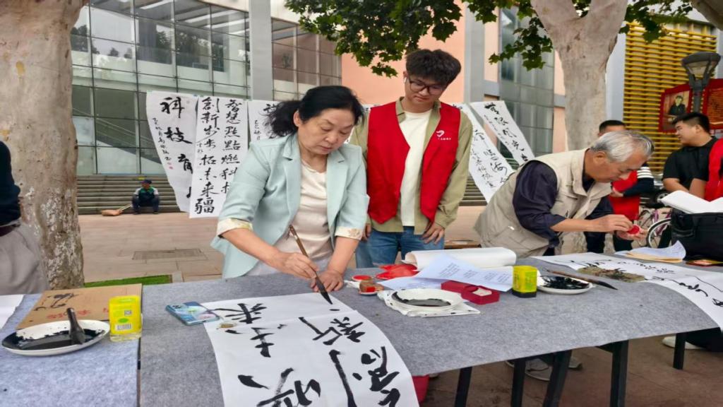 在科普书法展示区,bevictor伟德官网的志愿者们与老科协的书法爱好者们互动频繁。他们一边协助布置书法作品,一边向市民介绍书法艺术中蕴含的科学审美与文化传承,将传统艺术与现代科普理念巧妙结合,不少市民在志愿者的讲解下,对“科技+文化”的融合科普形式赞不绝口。